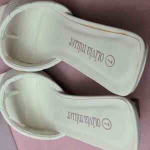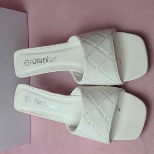 Olivia Miller Honey Camp Off White Square Toe Quilted Slide On Kitten Heels 7