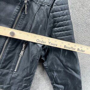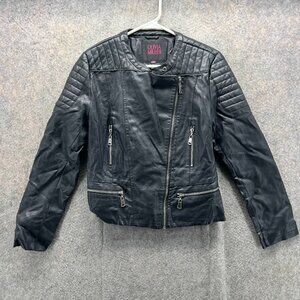 Olivia Miller Jacket Womens Small Black Faux Leather Moto Biker Zip Pockets
