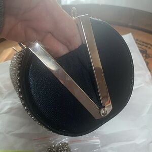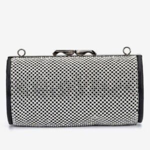 Olivia Miller | NWT Black Silver Reagan Rhinestone Evening Mini Cylinder Bag Clutch