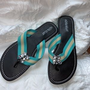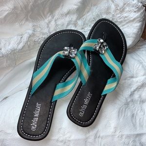 Olivia Miller Studded Color Teal Ribbon Flip Flops Rubber Size 7 / 8 Medium