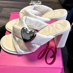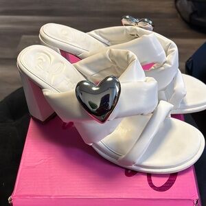 Experience the perfect blend of style and comfort with Olivia Miller's white sandals. These chic sandals feature two wide straps adorned with decorative metallic embellishments, adding a touch of modern flair. Designed with a cushioned footbed, they ensure all-day comfort, making them ideal for casual outings. The minimalist aesthetic and flat sole make these sandals a versatile addition to any wardrobe.