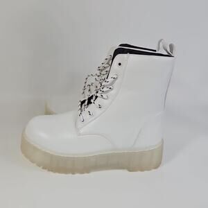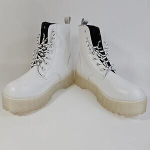 Olivia Miller White faux Leather Combat Boots Womens Size 8.5