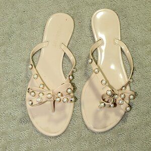 Olivia Miller Women's Size 8.5 Blush Pearl Bow Jelly Thong Sandals Flip Flop