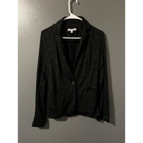 Olivia Moon Black Textured Knit Blazer XS Womens Single Button