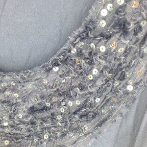 Olivia Moon Blue Tank Top Lace and Sequin Ruffled Collar Size L