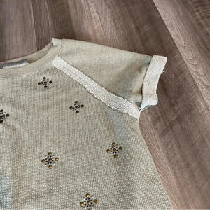 Olivia Moon Pullover Sweater Top Short Sleeve with detail • Small