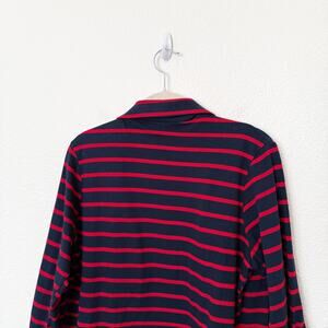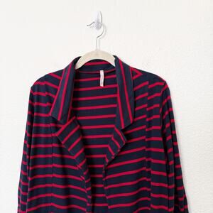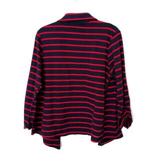 [Olivia Moon] Red Navy Striped Open Front Knit Blazer Jacket 3/4 Sleeves Size XL