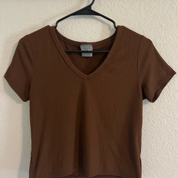 Olivia Rae Brown Ribbed V-Neck Top