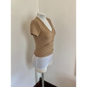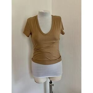 Olivia Rae NY Ribbed Basic Short Sleeve Light Brown Top Short Sleeve Small V Nec