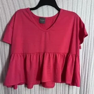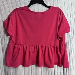 Chic raspberry top with a V-neck and ruffle hem. Perfect for casual outings.