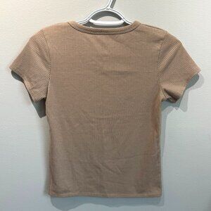 Olivia Rae ribbed t-shirt, camel, size small, gently used. Missing tag, has minor pilling but still in great condition.