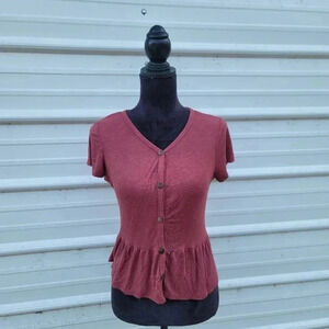 Olivia Rae Wome Cropped T-Shirt Tee Rust Red Peplum Stretch Crop Top Women sz M