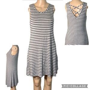 Olivia Rae Womens Sundress Striped Casual Sleeveless Black and Gray Medium