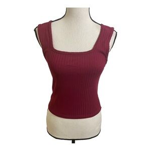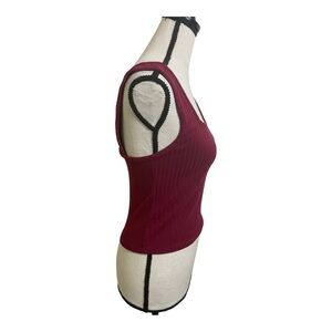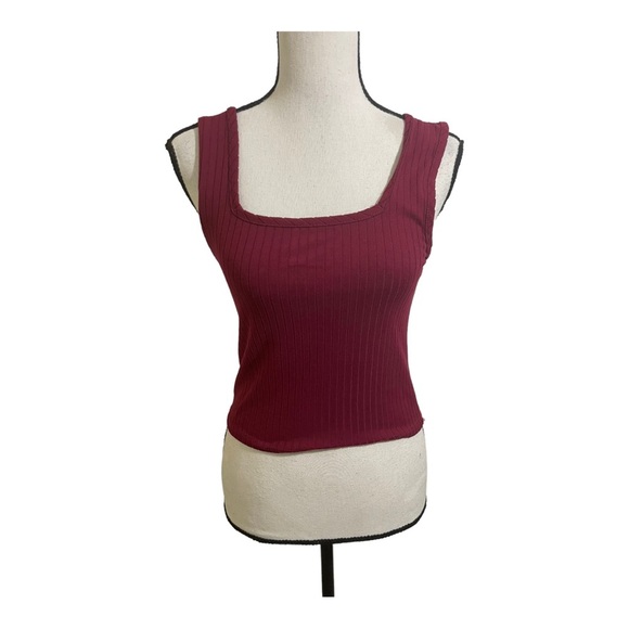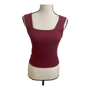 Olivia Rae womens ribbed style square neckline crop tank top Size Small Wine red