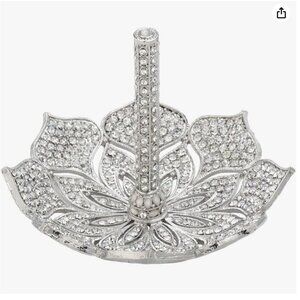 Tags: crystal lotus ring holder, rhinestone jewelry display, sparkly vanity décor, luxury ring stand, silver lotus organizer, bridal jewelry holder, glam home décor, crystal jewelry stand, elegant dresser accessory, wedding gift jewelry holder