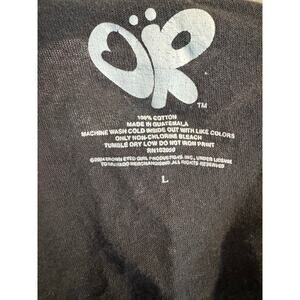 Official Olivia Rodrigo GUTS World Tour concert tee in size Large. Black short sleeve shirt with bright lavender/pink graphic front and full tour dates on the back. Good preowned condition with typical wash wear/fading, but the graphic remains vibrant and bold.