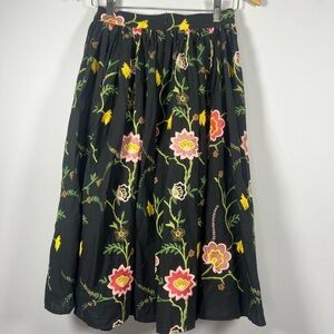 Olivia Rohde Floral Embroidered Midi Skirt High Waisted Small