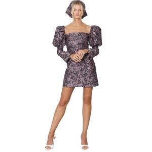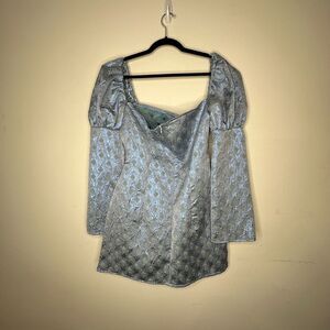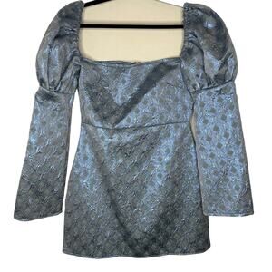 Olivia Rose The Label Blue Ophelia Diamond Design Crinkle Square Neck Puff Shoulder Long Sleeve Micro Mini Dress Back Zip