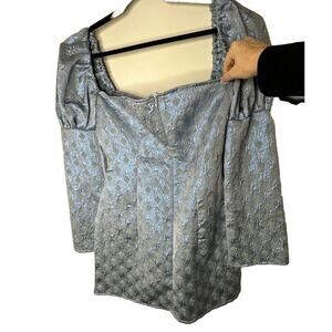 Olivia Rose Cute Blue Ophelia Diamond Crinkle Square Neck Puff Sleeve Mini XL