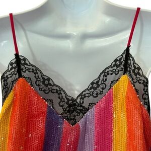 This absolutely gorgeous striped sequin and lace camisole top is brand new with tags.