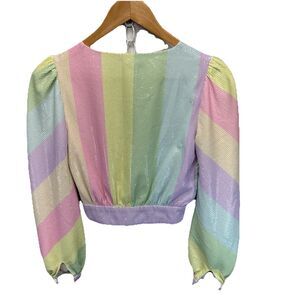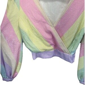 Olivia Rubin Kendall Womens Pastel Stripe Sequin Top Size XS 0 Iredescent Multi
