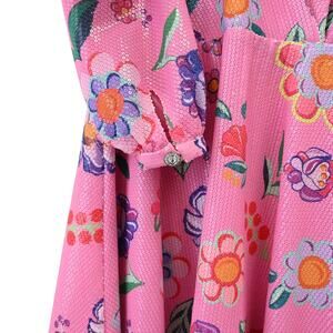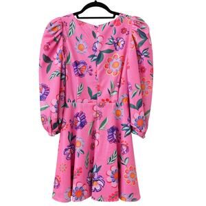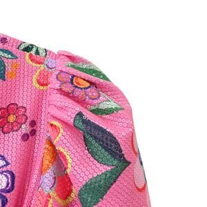 Olivia Rubin Mini Dress Size 0 Pink Sequin Floral Puff Sleeve Party Cocktail