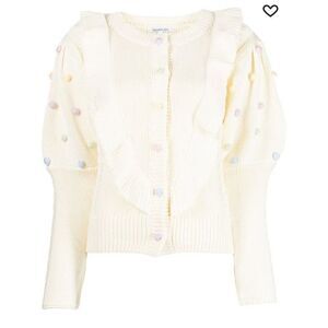 Olivia Rubin Women's Cream Rou Pompom Ruffled Knitted Cotton Cardigan XS