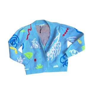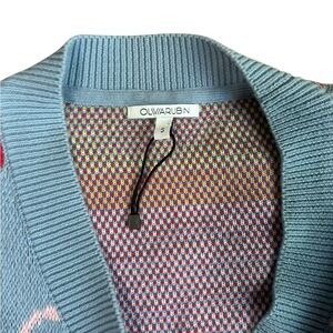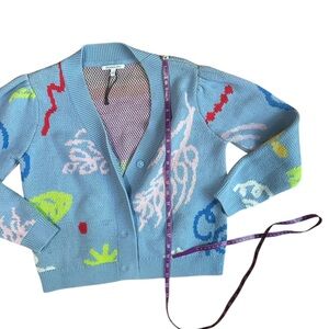 Olivia Rubin Womens Hilda Cardigan Light Blue Abstract 100% Cotton Size Small
