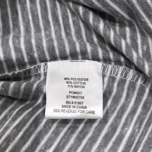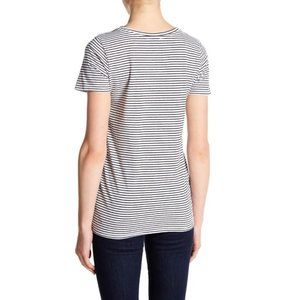 An adjustable ruched front adds a unique look to this striped basic tee.