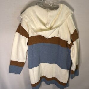 Olivia Sky Striped Cardigan Sweater with Hood and Open front Large NWT