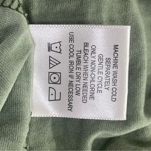 This Olivia Sky T-Shirt is a stylish and versatile top for women in size 1X. The tee features a V-neckline, cuffed short sleeves with accents like cuffed sleeves and side slits, and a pullover closure. Made from a blend of spandex and rayon, this lightweight shirt is perfect for travel and casual wear in all seasons. Its solid green color, regular fit, and collarless design give it a basic yet chic style that can be easily paired with different bottoms for a trendy look. Colors may vary due to lighting, NEW with tags, size 1X