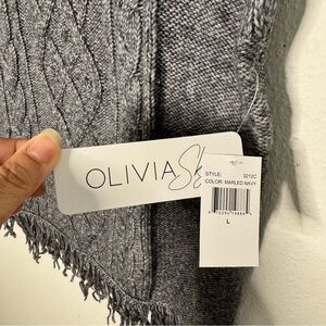 Olivia Sky cowl neck fringe cable knit sweater vest gray size L NWT