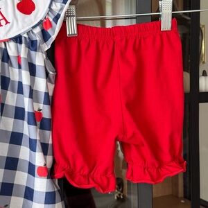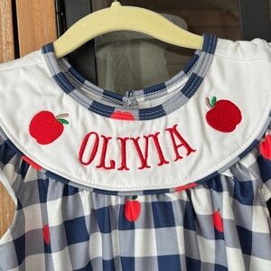 Olivia embroidered set smock apples gingham first day school ruffle shorts dress