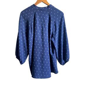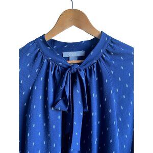 Olivia & martin Blue Check Tie Front Puff Sleeve Popover Top Size 1X