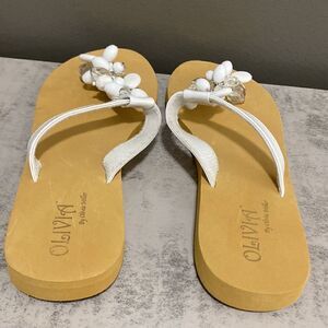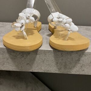 Olivia Miller White Beaded Thong Sandals Size 7/8
