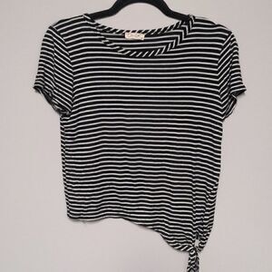 Black and white short sleeve shirt with side tie