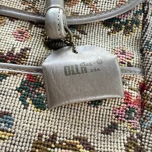 The Olla Handbag is a stylish and unique top handle bag featuring a floral tapestry exterior in a multicolor design. This artsy and effortless handbag from Olla Bags is perfect for those who appreciate vintage-inspired accessories with a touch of 80s and 90s style.