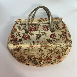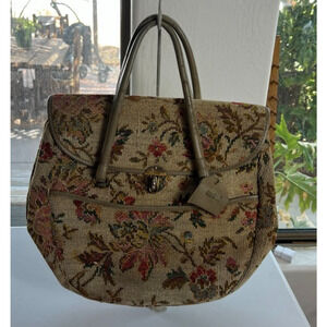 Olla Handbag Twist Lock Floral Tapestry Double Handle Inner Divider Outer Pocket