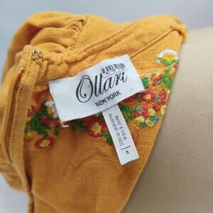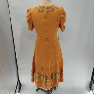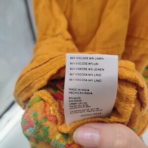 Ollari maxi Dress Yellow/Orange linen from Anthropologie Mexican pattern boho