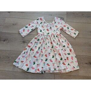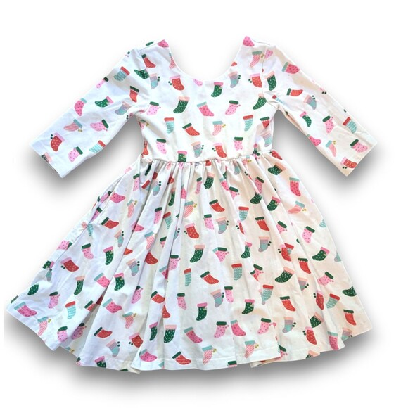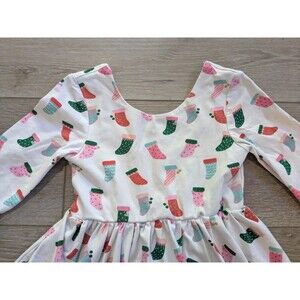 Ollie Jay white long sleeved dress with pattern of Christmas stockings in girls size 4. This cute dress is in very good used condition with minimal wear.