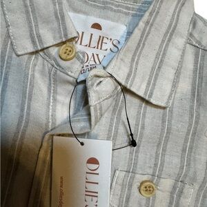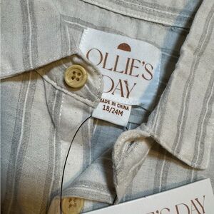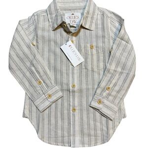 👕✨ Ollie’s Day Gray Stripe Linen Button-Down Shirt 18-24M 2/3 | Toddler Boy Top👕