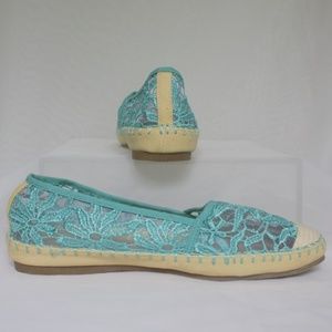 Ollio Women Size 8 ½ Style ZM1049, Turquoise Blue n Tan Ballet Slip-on Flat Loafer Shoes, Pre-owned, Out of Box, Breathable Synthetic Floral Lace, (¼”) 0.4-inch Rubber Soles…*...Thanks for Stopping and Sharing, Remember UnityHelps Shop and Happy Poshing..l