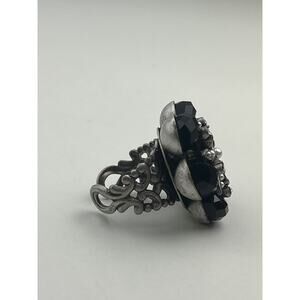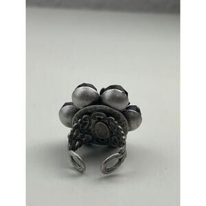 Ollipop USA Adjustable Ring Silver Tone Black Flower