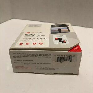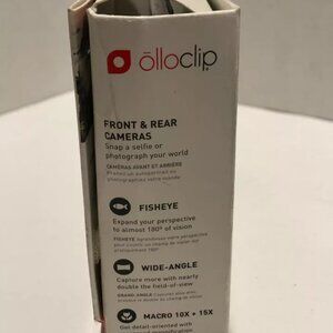 Preowned but looks unused. In original box packaging (exterior wear). OlloClip 4-in-1 photo lens for iPhone 6/6s and iPhone 6/6s Plus. Fisheye, wide angle, and macro 10x and 15x. Clip over phone camera.