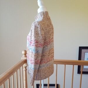 Chic Olsen cardigan with a blend of beige and blue tones. Ideal for layering. Like new.