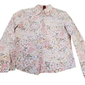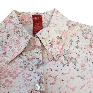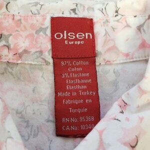 Olsen Europe Womens Pink Floral Button Up Top Size 6.