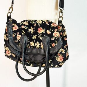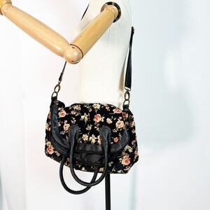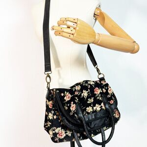 Olsenboye | 1990s Style Black Floral Oversize Bag | Convertible Crossbody Handle