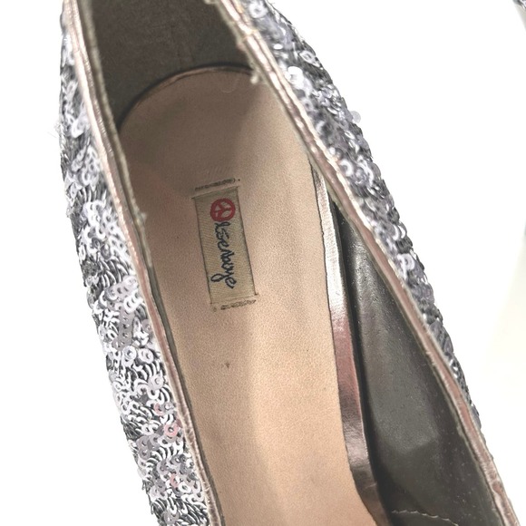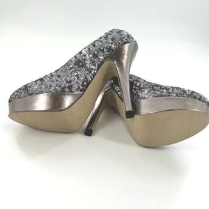 Olsenboye Silver Sequin Parys Round Toe Platform High Heel Stilettos Size 7.5
