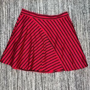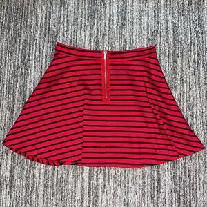 Olsenboye Womens Size Large Striped Skater Skirt Red Zip Up Asymmetrical Striped