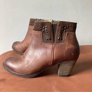 OluKai | Ho'Ohilu Women's Leather & Suede Studded Ankle Bootie in Friar Brown